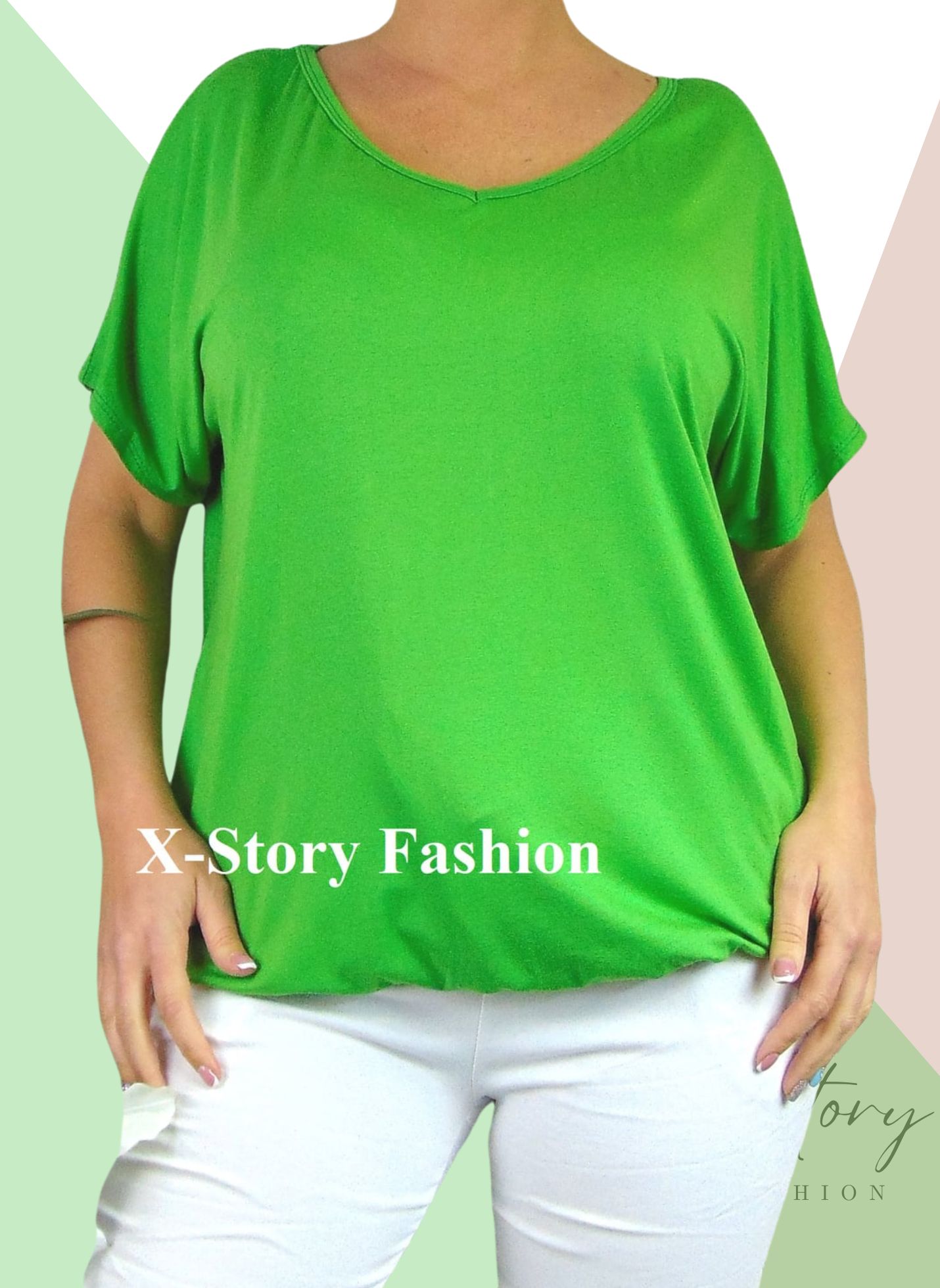 Gumis aljú, "V" dekoltált felső (kivizöld)